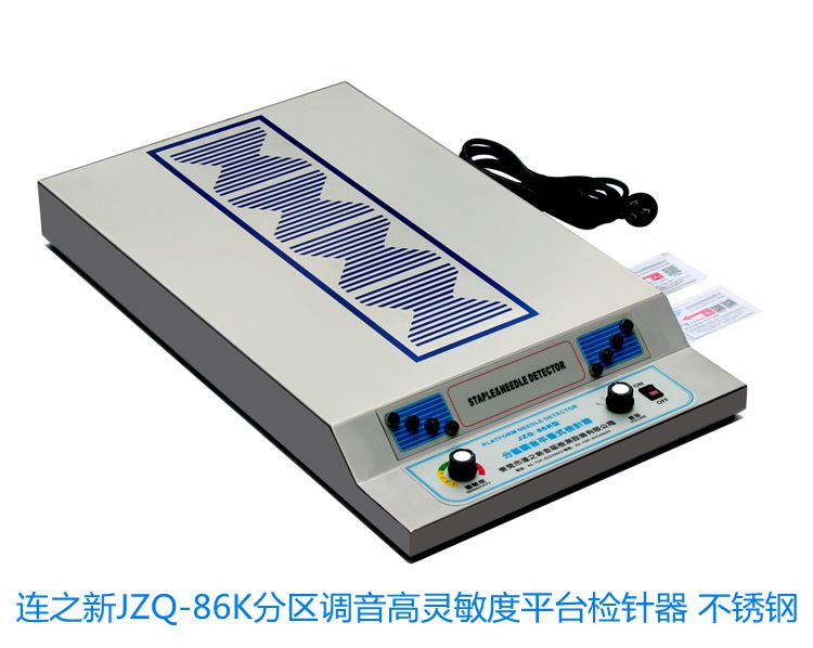 JZQ-86K全不銹鋼型分區(qū)調(diào)音高靈敏度平臺式檢針器,是一款全機采用304不銹鋼鈑金制作的一款高靈敏度平臺式檢針器,具有聲音4檔調(diào)節(jié),靈敏度12級可調(diào),四個獨立分區(qū)可單獨和合并使用等優(yōu)點。并且可抵抗高周波等高頻機的干擾??蓹z測到0.8mm的細小鐵針斷頭