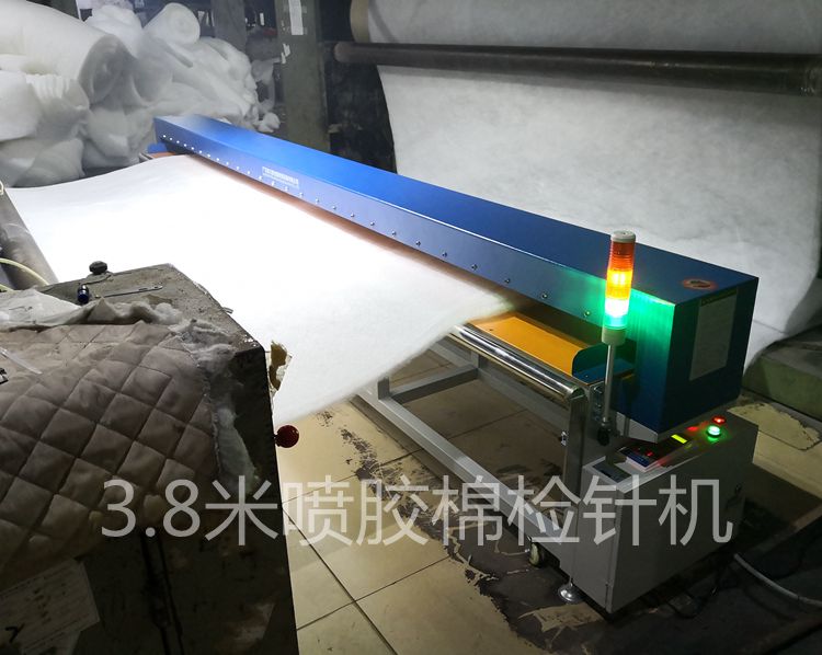 東莞中某仿絲棉是一家集團(tuán)型港資企業(yè)下屬噴膠棉專業(yè)生產(chǎn)企業(yè)。最近淘汰了一臺(tái)早期的3.8米寬幅驗(yàn)針機(jī),經(jīng)過對(duì)比選購我公司一臺(tái)新款3.8米寬幅龍門式檢針機(jī)用于檢測(cè)管控其噴膠棉生產(chǎn)線。經(jīng)過一個(gè)多月的使用,機(jī)器驗(yàn)收合格,完全達(dá)到客戶預(yù)期要求。