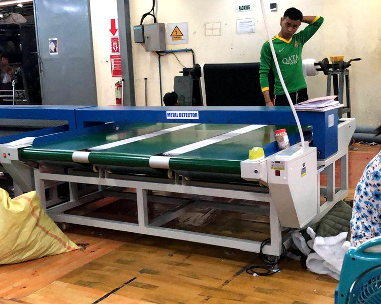 緬甸客戶專業(yè)生產(chǎn)羽絨服被,先后采購我公司定制生產(chǎn)的1.8米寬幅檢針機(jī)用于檢測(cè)其羽絨服被裁片的金屬異物。