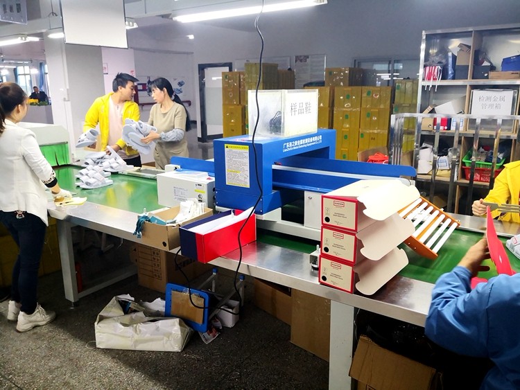 隨著競爭越來越厲害。工廠都要打起精神來仔細(xì)應(yīng)對(duì)客戶要求。金屬利器管控是最后也是最重要的一個(gè)環(huán)節(jié)。連之新流水線上檢針機(jī)為企業(yè)提供了金屬利器管控檢針檢測(cè)保障。不會(huì)額外占用通道,只需要將檢針機(jī)放到流水線上即可在線進(jìn)行檢針作業(yè)。案例為厚街溪頭某誠鞋廠使用現(xiàn)場。