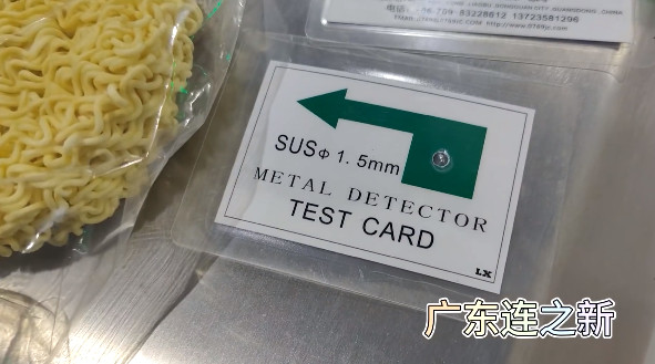 當有方便面通過廣東連之新金檢機時,機器鳴叫,紅燈閃爍,證明含有金屬。