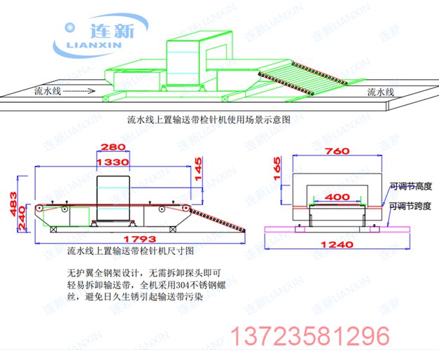 產(chǎn)品名稱:鞋廠流水線上置輸送式檢針機(jī) 帶滑道